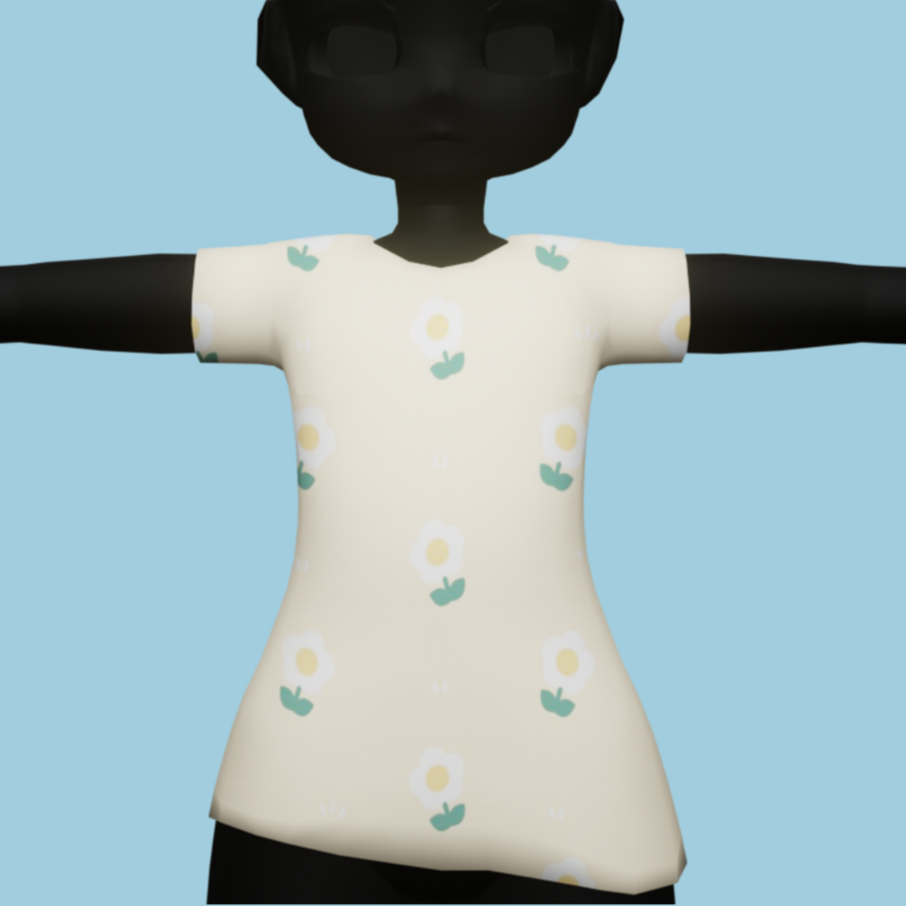 simple t-shirt for nyakohs chibi base, only includes fbx no textures, any square shaped pattern should work an example is in the preview images. product is rigged and weightpanted