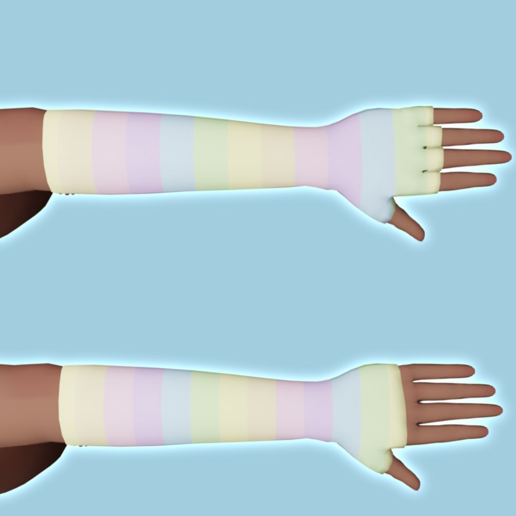 simple arm warmers for nyakohs chibi base, includes fbx and one texture, any square shaped pattern should work an example is in the preview images. product is rigged and weightpanted